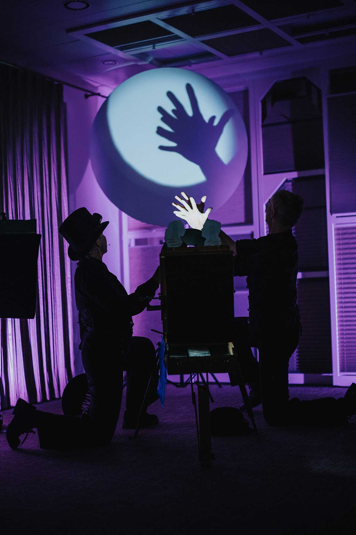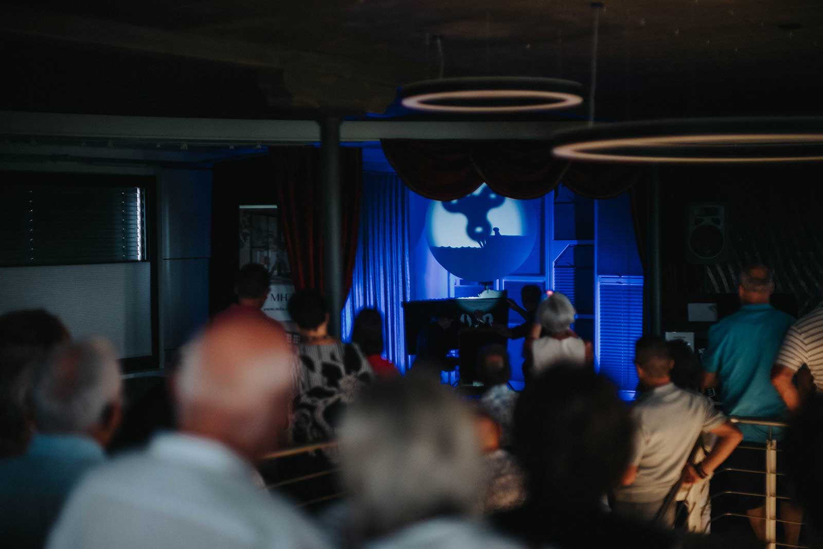 Das Schattentheater Comedia Zap zog die Gäste mit einer bewegenden, aber auch humoristischen Interpretation der legendären Titanic-Verfilmung in ihren Bann. Im abgedunkelten Obergeschoss war das Schattenspiel in unserem Fenstergestaltungsbereich perfekt platziert.